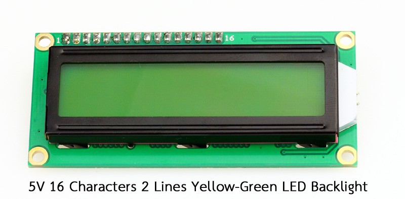 5V. 16 Character 2 Lines Yellow-Green LED Blacklight