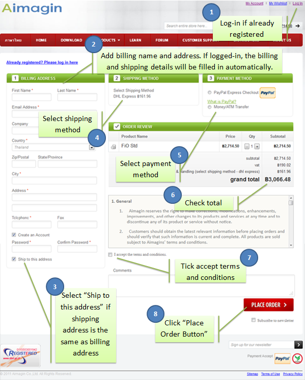 All orders with a billing address in Thailand is subjected to 7% VAT.